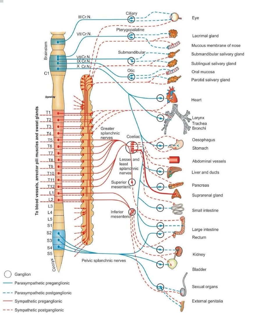 This system has a different origin point—the craniosacral region, which includes specific cranial nerves from the brainstem and sacral segments S2 through S4 of your spinal cord.